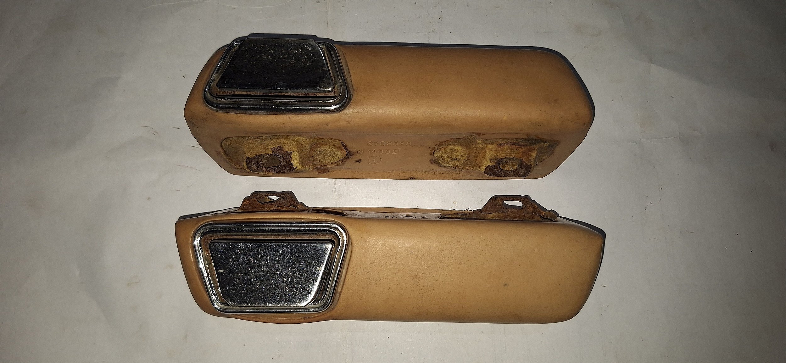 PAR DE APOIO DE BRAÇO/ PUXADOR DE PORTA TRASEIROS NA COR BEGE PARA O CHARGER R/T, MAGNUM, DART e LE BARON. PRODUTO ORIGINAL USADO EM BOM ESTADO CONFORME FOTOS DETALHADAS. VEJA TODAS AS FOTOS E PERGUNTE A VONTADE ANTES DE EFETUAR A COMPRA.