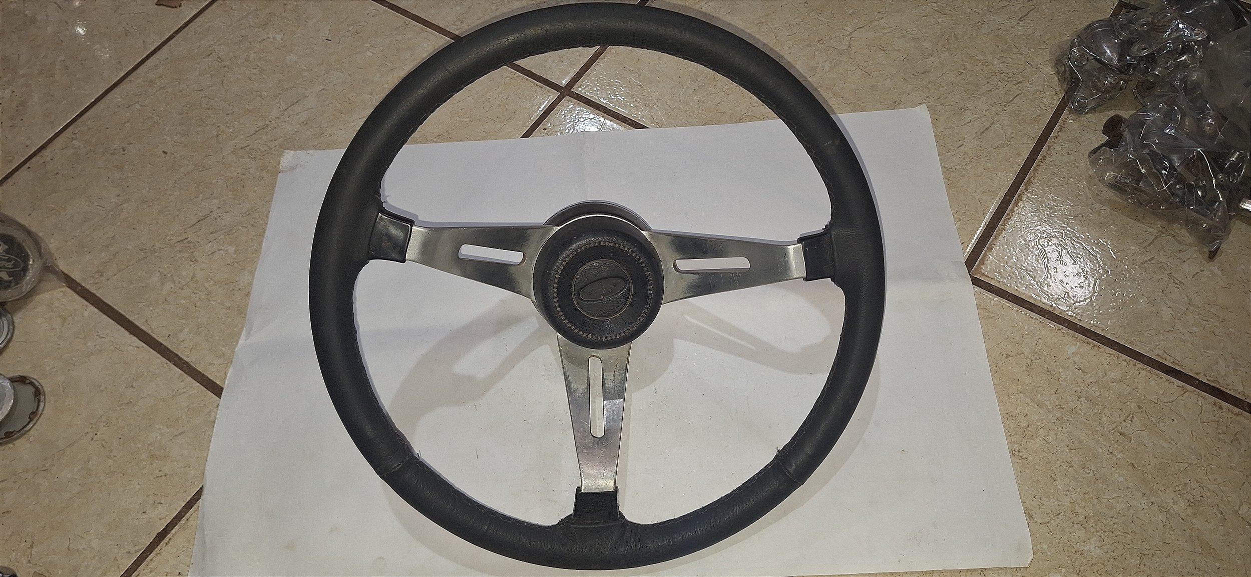VOLANTE WALROD ESPORTIVO PARA O CORCEL GT e MAVERICK GT. PRODUTO ORIGINAL USADO REENCAPADO COM COURO LEGITIMO NOVO, CONFORME FOTOS DETALHADAS. VEJA TODAS AS FOTOS E PERGUNTE A VONTADE ANTES DE EFETUAR A COMPRA.